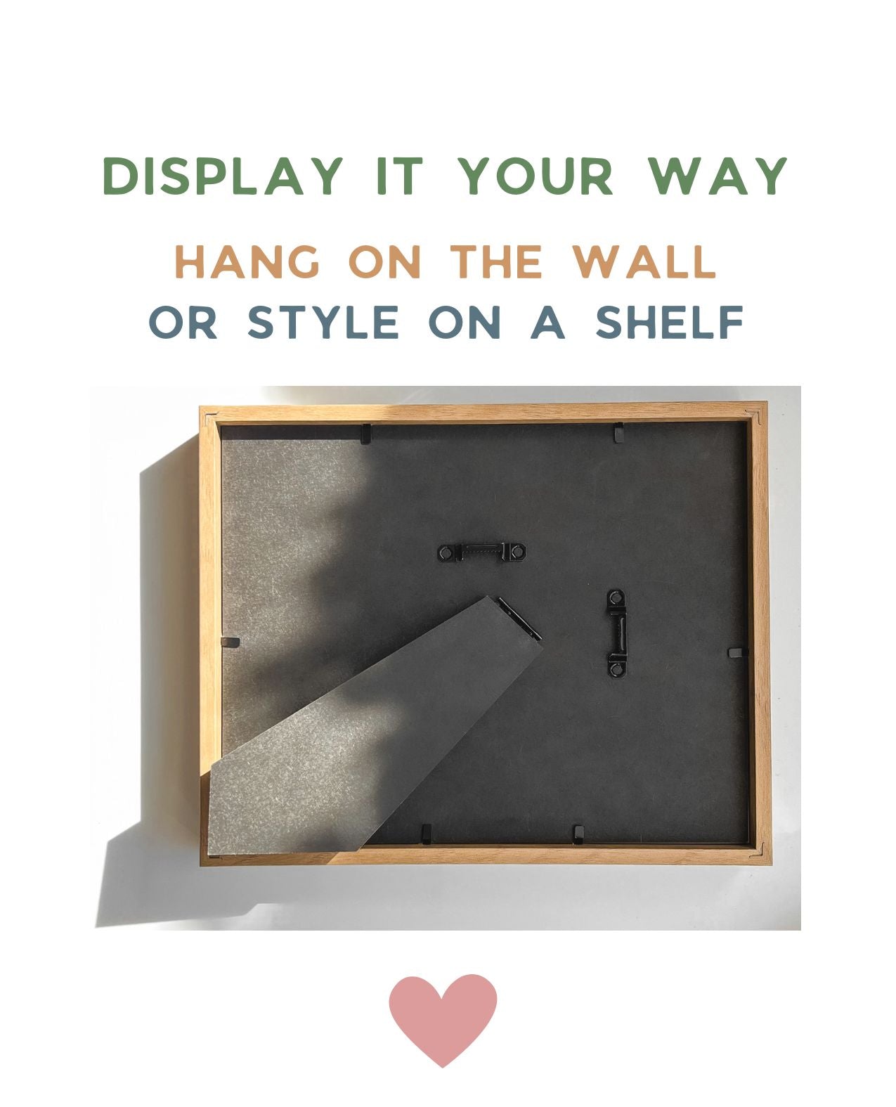 • Oak-look frame with a clear plastic front instead of glass, so it's lightweight, shatter-resistant, and perfect for nurseries and kids’ spaces.